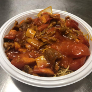 Chop Suey with Curry or Black Bean Sauce – add 2.00